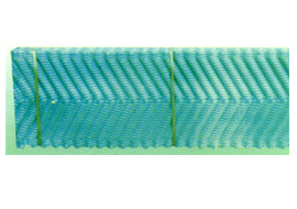 該填料設(shè)計(jì)合理,數(shù)據(jù)可靠,經(jīng)久耐用,通過試驗(yàn)和生產(chǎn)運(yùn)行表明冷卻效果好,通風(fēng)阻力小,產(chǎn)品親水性能強(qiáng),成膜性好,易于填料的熱傳導(dǎo)。傾斜交一般為60°,主要用于圓形冷卻塔。